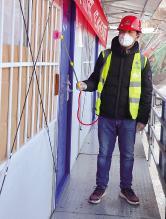 3月4日,第三分局东庄水利枢纽工程项目部学雷锋志愿服务对从外到内,由下到上为营地大大小小的工作、生活区域进行了彻彻底底的消毒。“雷锋精神,人人可学,我正尝试着在奉献中体会这种精神的内涵,然后结合自己的理想信念和道德品质追求,将它一步步努力转化到具体的工作和生活中去。”为工人师傅测完体温的安全员王奔说到。